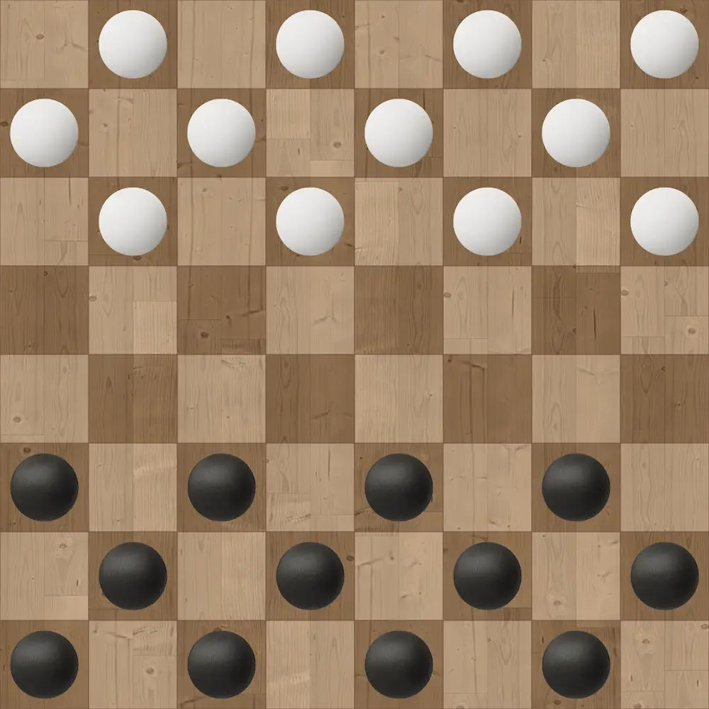 Childhood classic on an 8×8 board. 12 pieces per player. Simple rules but deep strategy and combinations.